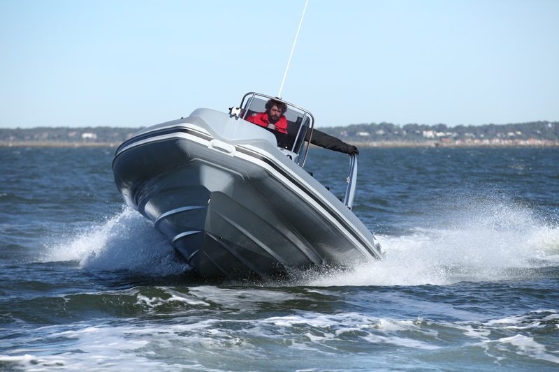 Notre essai s'est déroulé dans le Bassin d'Arcachon, sur un clapot agressif levé par une brise de nord-est soufflant à 4 beauforts établis, avec deux personnes à bord et presque la moitié du plein de carburant. Dès les premières accélérations, on a pu apprécier le punch de la bimotorisation, en l'occurrence deux Suzuki 200 ch 4 cylindres. Manquant parfois de coffre en solo pour mouvoir certains semi-rigides, ce 200 ch "downsizé" nous a fait forte impression en duo sur le tableau arrière du Led 28. Un coup d'œil au chrono a confirmé cette sensation : seulement 3"9 pour passer les 20 nœuds, voilà qui n'est pas courant aux commandes d'un semi-rigides de plus de huit mètres ! Et la vitesse maxi n'est pas en reste, puisque nous avons signé un beau 45,6 nœuds, malgré une coque nappée d'un antifouling, coûtant facilement trois nœuds. Autrement dit, sans peinture sous-marine et avec la puissance maxi autorisée, 2 x 225 ch (soit 50 ch de plus que la monte de notre essai), les 50 nœuds devraient être une formalité. Bien sûr, le 28 GS XL n'a pas vocation à battre des records dans ce domaine, mais sachant que les ratios distance parcourue/essence consommée sont directement tributaires de la vitesse, on peut en déduire que les allures de croisières se montreront économiques. N'étant pas doté des commandes électroniques, nous n'avons pu bénéficier de la fonction débitmètre pour relever les consommations… Nous pouvons néanmoins avancer une estimation de 0,64 m/l, pour la croisière économique à 3 500 tr/min (24,5 nœuds), et de 0,55 m/l, pour la croisière rapide à 4 500 tr/min (32,8 nœuds). D'excellentes valeurs qui, associées à la grande capacité en carburant du Led 28, devraient déboucher sur une autonomie de croiseur : 275 milles à 24,5 nœuds !