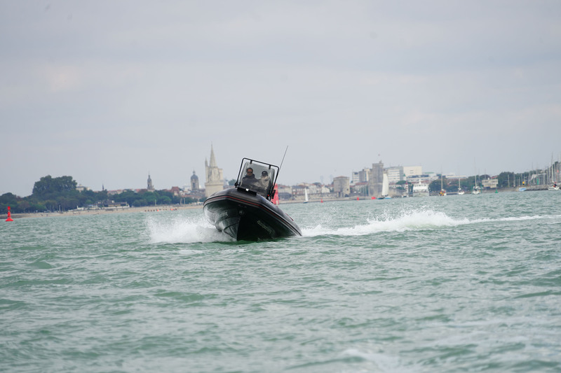 Avec une construction en aluminium, on se doute que le poids va influer sur le comportement dynamique du BlackPearl 7. Et dès les premiers tours d’hélice, le premier constat positif est au rendez-vous, avec notamment une manœuvrabilité et une réactivité à vitesse lente de bonne augure. Le plan d’eau devant La Rochelle est calme, avec pas mal d’unités croisant au large, plutôt normal en période de Grand Pavois, ce qui fera notre affaire pour trouver des sillages à croiser. En attendant de se rendre sur zone, il faut parler de l’ergonomie très correcte du poste de barre et les passagers se déplacent à bord avec de solides main-courantes à portée de bras. Amarres et pare-battages trouvent facilement un endroit pour être stockés. Une fois les dernières bouées de balisage dépassées, le déjaugeage survient en 3,2 secondes ( 3 personnes à bord et le réservoir plein ), la proue ne bloquant pas la vision. Un défaut est cependant relevé dès les premiers instants en position assise: la sellerie est trop fine et imprime un cisaillement du postérieur assez prononcé. Une erreur facilement corrigible, qui le sera sur les prochaines unités. Il faut donc poursuivre la navigation debout, ce qui, malgré un volant non réglable, ne gêne pas la posture de barre. Au démarrage, une fois le planning atteint, l’assiette se révèle stable, le loch affichant vingt nœuds en un peu plus de 4 secondes. En poursuivant la montée dans les tours et en trimant généreusement, la vitesse maximale relevée est de 48 nœuds, avec un régime moteur de 6 000 tr/min. Une vitesse de pointe qui n’affecte pas la stabilité d’ensemble du semi-rigide. Autant le barreur que les passagers profitent d’un confort général en navigation, même si (on le regrette) l’assise située en avant de la console est dépourvue de main-courante. Un petit rajout serait le bienvenu. L’AtlantiCraft BlackPearl 7 est assez vivant à piloter. Il répond bien aux changements de direction et se montre très prévisible dans les courbes larges à grande vitesse. Même constat avec un rayon de giration plus faible : la confiance est au rendez-vous. L’accroche est bonne, la réponse moteur dans les relances est vive et la carène insuffle une bonne tenue de mer. En croisant les vagues de traîne de lourdes unités, on apprécie les retombées qui s’effectuent en douceur et un équilibre stable malgré un rythme poussé. Maintenir une moyenne de vitesse élevée pour un semi-rigide destiné à la pêche est primordiale. De surcroit avec 25,8 l/h consommés à 25 nœuds, l’AtlantiCraft BlackPearl 7 se montre frugal. Enfin, en mode croisière économique, c’est-à-dire avec un planning très confortable pour les passagers, il ne consomme qu’un peu plus de 18 litres par heure à 20 nœuds. De quoi se rendre sur des zones de pêche très reculées, avec en prime un confort de navigation et un volume de rangement à bord qui raviront les plus exigeants.