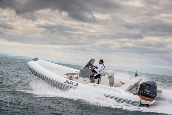 Cela fait déjà quelques années que le Strider 700 a touché l’eau pour la première fois. Il est l’entrée de gamme de cette fameuse série qui culmine à près de 20 mètres avec son modèle-amiral, le Strider 20, Et malgré sa longueur hors-tout de 7,50 m, le S700 est aujourd’hui le moins grand des semi-rigides construits chez Sacs… Bénéficiant comme ses frères de chantier de la « patte » du designer italien Christian Grande, auquel il doit la plastique originale de sa console de pilotage, le Strider 700 fait encore bonne figure face à des concurrents plus récents. Embarquons pour une visite détaillée…