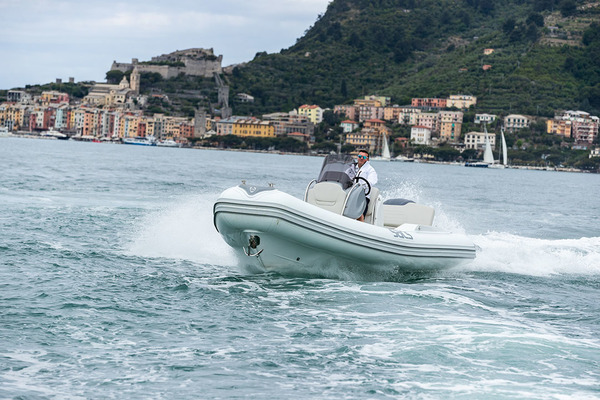 Malgré une bonne brise de force 3 à 4 et un clapot agressif d’environ un demi-mètre, le S700 a rapidement fait étalage de ses bonnes dispositions en navigation, avec deux personnes à bord et un réservoir d’essence presque plein. Bien « boosté » au démarrage par le Verado 250 chevaux (la puissance maxi autorisée sur ce bateau), le S700 atteint rapidement les hauts régimes, prenant jusqu’à 6 300 tr/min avec le concours d’un réglage de trim positif. Malgré notre insistance à chercher les derniers dixièmes de nœuds pour finalement décrocher 46,3 nœuds, un beau résultat compte tenu du gabarit de ce semi-rigide plutôt charpenté (1 200 kg sans moteur), la stabilité demeure quasi imperturbable. Stabilité latérale et longitudinale impeccable, quelle que soit la direction suivie et tenue de cap rigoureuse, même pleins gaz. Voilà qui met tout de suite le pilote (et l’équipage) en confiance. De quoi tenter quelques virages bien appuyés pour lesquels le S700 montre un bel appétit, adoptant une gite modérée et régulière accompagnée d’un grip ferme. Seul bémol, une tendance à ventiler en sortie de virage serré, à la remise de gaz.