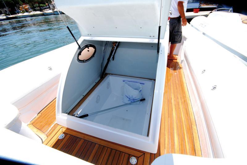 Une plage de bain royale, parée de teck. C'est un des atouts de la formule in-board