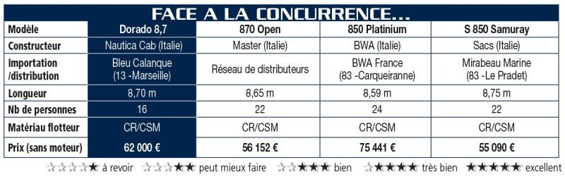 Sous une présentation plutôt discrète, ce bateau cache un sacré tempérament marin et accumule les bonnes notes concernant l'équipement, les grands volumes de rangement et l'agencement du cockpit. Ajoutons que les Suzuki 225, en twin, lui vont comme un gant, mais qu'il pourrait fort bien se contenter d'une puissance un peu inférieure. C'est un bateau qui donne des idées de croisières-raids, avec déjà presque tout ce qu'il faut à bord. La tente de camping est d'ailleurs prévue par le constructeur...
