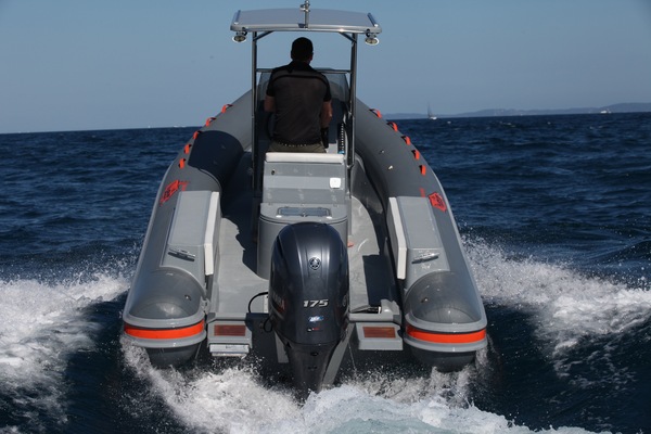 Lors de notre essai dans la baie d’Hyères, une bonne brise d’Est levait un clapot agressif de 70 cm qui nous a posé quelques problèmes pour exploiter tout le potentiel vitesse de ce Barracuda disposant d’un Yamaha 175 ch. La bonne volonté du quatre cylindres japonais n’est pas en cause, mais nous n’avons pas pu prendre le régime maxi et trimer à notre guise, le bateau étant un peu difficile à tenir au-delà de 40 noeuds dans ces conditions. Nous avons donc dû nous contenter de 40,4 nœuds, ce qui n’est pas en soit une performance décevante, surtout compte tenu du frein aérodynamique exercé par le T-top, mais l’on peut raisonnablement penser que trois ou quatre nœuds supplémentaires auraient pu améliorer le score par mer calme.
